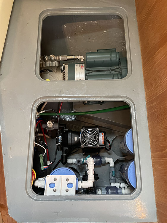 Before we purchased the watermaker, I needed to know if all the components would fit in the boat and where they would fit, as watermakers are not tiny. A 30gal/hr unit requires two 44˝ pressure vessels, and I wasn’t sure I had room for two. I certainly didn’t want to purchase two pressure vessels and find out I only had room for one.