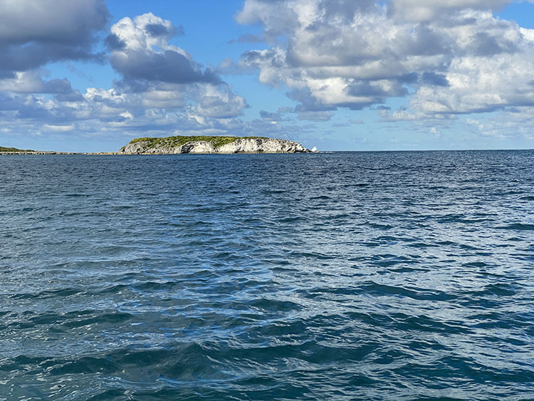 The usual first stop after leaving West End is Great Sale Cay. It’s a 48nm passage and we were doing it with the wind on our nose. Not a strong wind, but the wind direction was forcing us to motor and not sail. We left Old Bahama Bay Marina for Great Sale Cay at 7:00 am on the 24th. The route took us through Indian Rock Passage, a narrow and shallow path. It is not necessarily dangerous in calm weather, but it certainly is shallow. I noted water as shallow as 8′.