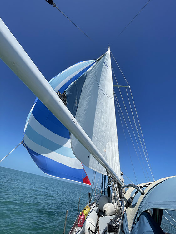 We left the next morning for the longest passage since the Bahamas, 216nm. It was to be our last passage on No Regrets. The passage took two days and we arrived in St Petersburg on February 2, 2023 at 9:00 am. We motored some and sailed some depending on the wind direction and speed. On the first day the conditions were perfect to fly the spinnaker so I set it and had a good run of several hours on spinnaker and main.