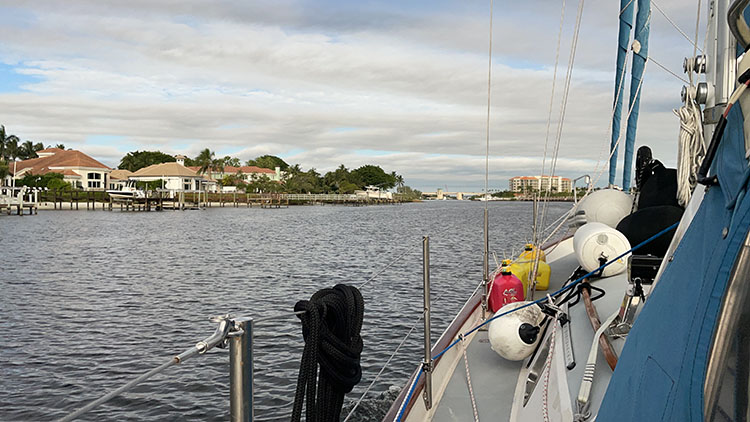 Our crossing was uneventful. So uneventful that our logbook app, Nebo, decided to mess up and not record the entire crossing including all the notes I took along the way. It started recording again, as soon as we got to Florida. Go figure. At some point during the night, we crossed the Gulf Stream, but the conditions were so calm we didn’t know when we had crossed it. We arrived at Lake Worth Inlet near West Palm Beach, Florida, at about 5 am. It was dark and I didn’t want to go through the inlet in the dark, so we floated outside until daybreak and followed a small cruise ship through the inlet. From the inlet, we turned right and headed up the ICW (Intracoastal Waterway) to our reserved slip at Titusville Marina.