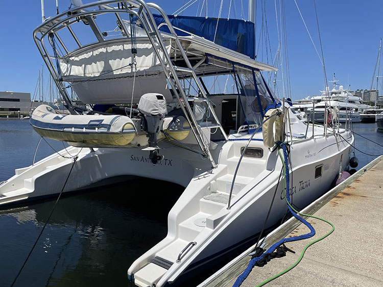 We have purchased a 2008 Manta 42 Mk IV catamaran, named Cerca Trova (google it to find the meaning). These were US-built catamarans that were produced between 1994 and 2008. We have the last one built, hull # 127. We are currently trying to find the space for all the stuff we had on No Regrets, do a few updates, clean (it wasn’t as clean as we kept No Regrets), and do some minor repairs (both bilge pump switches went out within a couple of weeks of one another).